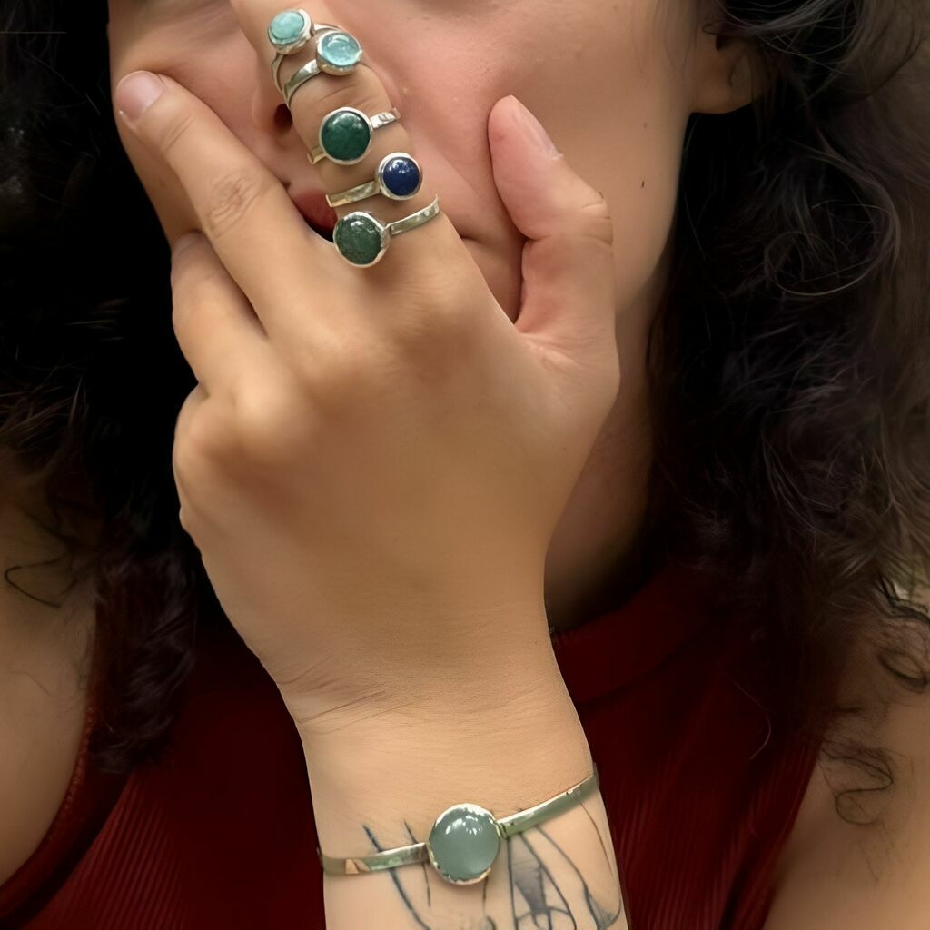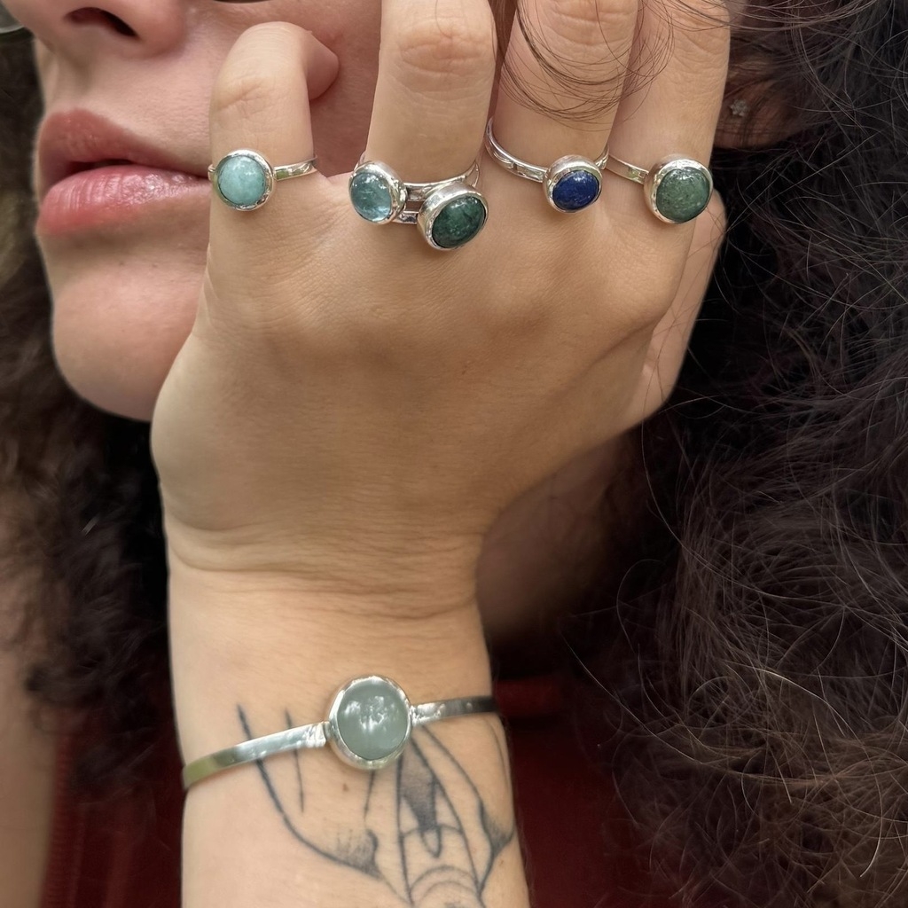 Material: Anel e bracelete ajustável de prata 950 e pedras preciosas. A escolha da pedra é definida para ambas peças!